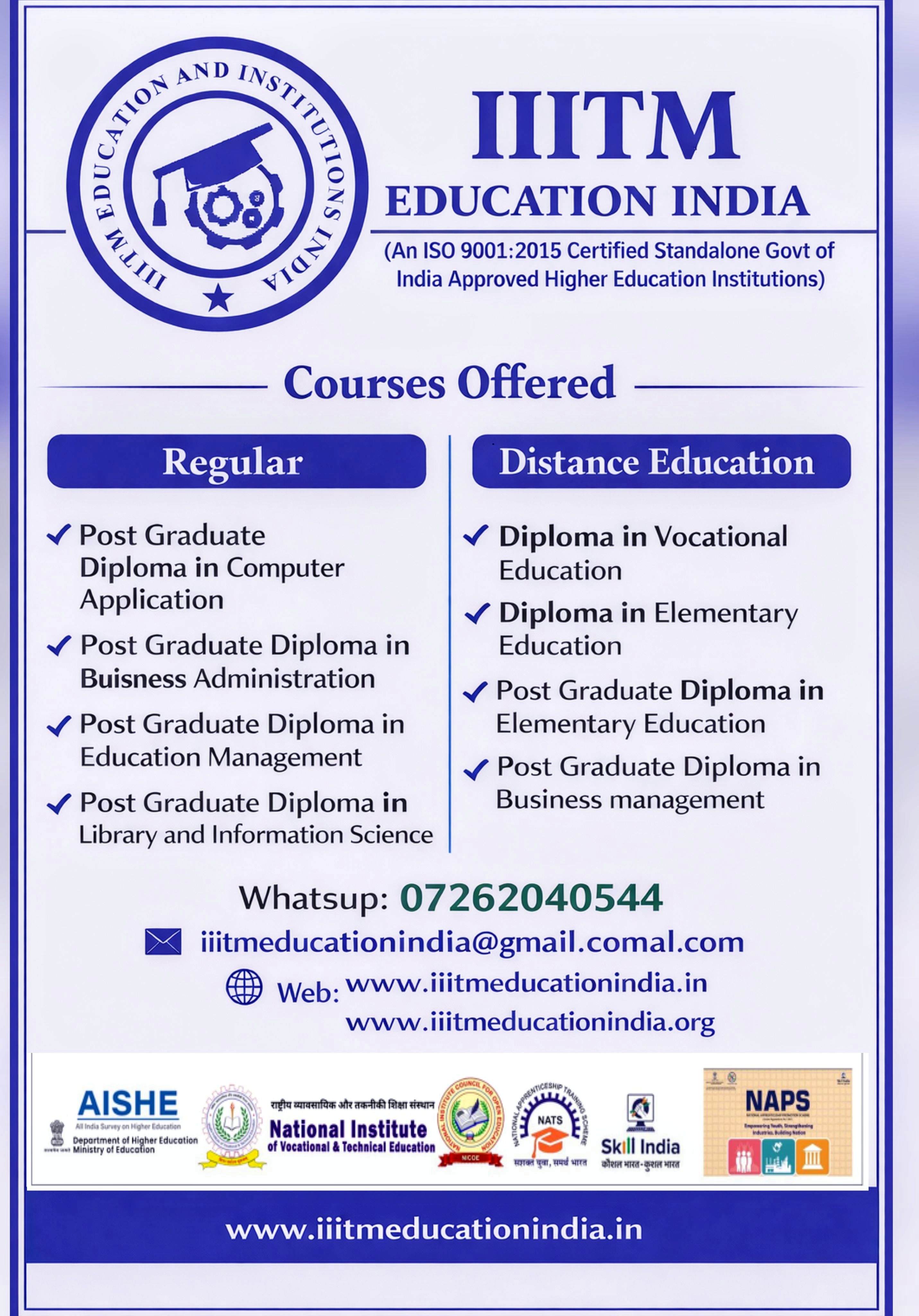 Welcome to IIITM Education & Institutions India. IIITM was founded by the Millennium Society for Technical and Vocational Education and was established in the year 2012 under Section 21 of the Societies Registration Act 1860 of the Government of India